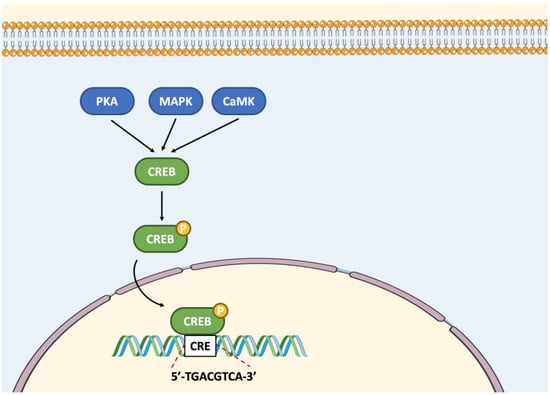 - Altarejos, J.Y.; Montminy, M. CREB and the CRTC Co-Activators: Sensors for Hormonal and Metabolic Signals. Nat. Rev. Mol. Cell Biol. 2011, 12, 141–151. [Google Scholar] [CrossRef]