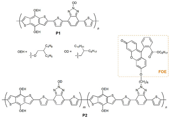 2.1. Synthesis of Polymers P1 and P2