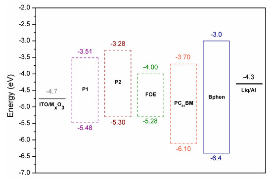 - Liu, J.; Tang, B.; Liang, Q.; Han, Y.; Xie, Z.; Liu, J. Dual Förster resonance energy transfer and morphology control to boost the power conversion efficiency of all-polymer OPVs. RSC Adv. 2017, 7, 13289–13298. [Google Scholar] [CrossRef]