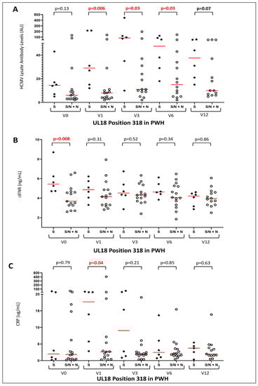 | V12, HCMV lysate antibody (AU) | 17 (5–58) | 51 (44–54) | 0.05 | ||||||