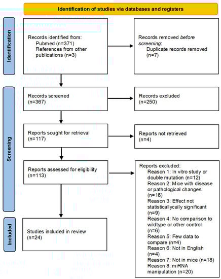 The initial PubMed–Medline search yielded 371 studies published before November 2020. We identified another three studies through other sources. After reading titles and abstracts, we excluded 261 manuscripts and 113 articles remained. We then read the full text of these articles and excluded more articles based on our inclusion and exclusion criteria. In the end, 24 publications were analysed quantitatively. The PRISMA flowchart in Figure 1 summarises the search and subsequent selection of the publications analysed in this study.