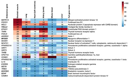 - Nezhad, Y.F.; Verbrugge, S.A.J.; Schonfelder, M.; Becker, L.; Hrabe de Angelis, M.; Wackerhage, H. Genes Whose Gain or Loss-of-Function Increases Endurance Performance in Mice: A Systematic Literature Review. Front. Physiol. 2019, 10, 262. [Google Scholar] [CrossRef]