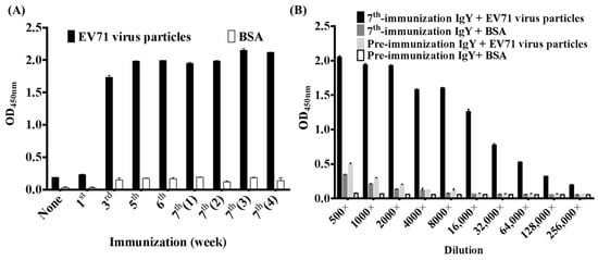 2.1. Analysis of Chicken IgY Antibodies after Immunization