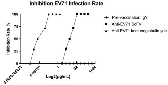 - Mwale, P.F.; Lee, C.H.; Huang, P.N.; Tseng, S.N.; Shih, S.R.; Huang, H.Y.; Leu, S.J.; Huang, Y.J.; Chiang, L.C.; Mao, Y.C.; et al. In Vitro Characterization of Neutralizing Hen Antibodies to Coxsackievirus A16. Int. J. Mol. Sci. 2021, 22, 4146. [Google Scholar] [CrossRef]