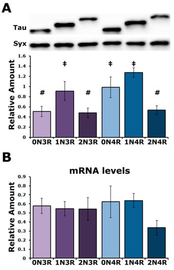 - Lacovich, V.; Espindola, S.L.; Alloatti, M.; Pozo Devoto, V.; Cromberg, L.E.; Carna, M.E.; Forte, G.; Gallo, J.M.; Bruno, L.; Stokin, G.B.; et al. Tau Isoforms Imbalance Impairs the Axonal Transport of the Amyloid Precursor Protein in Human Neurons. J. Neurosci. Off. J. Soc. Neurosci. 2017, 37, 58–69. [Google Scholar] [CrossRef]