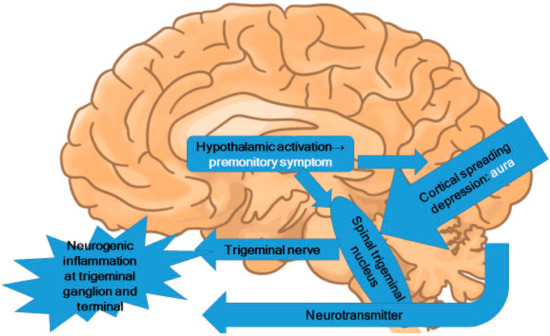 The trigeminovascular theory of migraine pathophysiology was proposed by Moskowitz [3]. In this revolutionary theory, the trigeminal nerve is thought to be the primary origin of migraine headaches. Stimulation of the trigeminal nerve causes vascular dilatation, and neurogenic inflammation also contributes to migraine symptoms. However, the theory does not explain the cause of trigeminal nerve excitation.