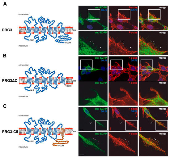 2.1. Membrane Expression of PRG3 and PRG5, also with Swapped C-Termini, but Not with PRG3∆C and PRG5∆C
