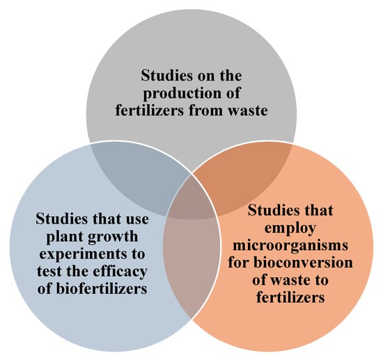 During the systematic literature review, the authors observed that the predominant themes among the search results were associated with anaerobic digestion (AD), vermicomposting, algal nutrient recovery from wastewater, and biofertilizer. It seems necessary to highlight the relevance of anaerobic digestion (AD), composting (including vermicomposting), and nutrient recovery studies from wastewater treatment plants (WWTP) in bioconversion of waste biomass. Other minor themes that were explored in literature survey were production technology (pre-treatment techniques) of bio-based fertilizers, testing of the impact of microbial biofertilizers (bioinoculants and biostimulants) in the specific host plant, carriers used for biofertilizer formulation and study of microbial communities after application of biofertilizers.