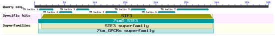 CDD predicts the conserved domain of STE3.3 and STE3.4 protein in Mlp.