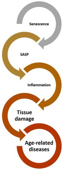 - Birch, J.; Gil, J. Senescence and the SASP: Many Therapeutic Avenues. Genes Dev. 2020, 34, 1565–1576. [Google Scholar] [CrossRef] [PubMed]