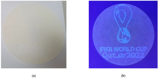 3APS-coated filter paper with writing by the Al(III) solution under normal light (a) and UV light (b).