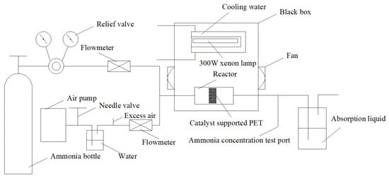 Device diagram of the photocatalytic degradation of gaseous ammonia.