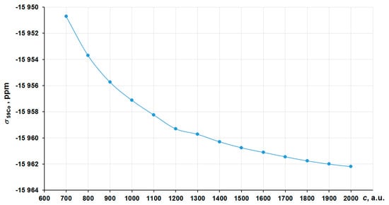 As can be seen in Figure 6, the calculated σ varies insignificantly (within 1 ppm) starting from 1800 a.u. To calculate the nonrelativistic limit for the cobalt shielding, we have also chosen the “13c scheme”.
