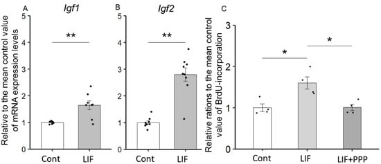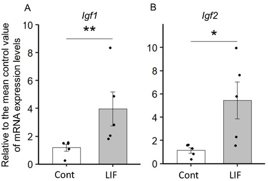 APA StyleTakata, S., Sakata-Haga, H., Shimada, H., Tsukada, T., Sakai, D., Shoji, H., Tomosugi, M., Nakamura, Y., Ishigaki, Y., Iizuka, H., Hayashi, Y., & Hatta, T. (2022). LIF–IGF Axis Contributes to the Proliferation of Neural Progenitor Cells in Developing Rat Cerebrum. International Journal of Molecular Sciences, 23(21), 13199. https://doi.org/10.3390/ijms232113199