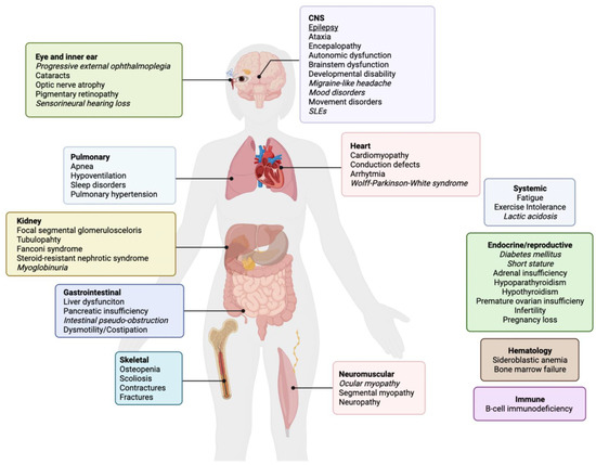 Interestingly, immune dysfunction has been proposed as a possible actor in mitochondrial epilepsy pathophysiology. There is evidence of blood–brain barrier disruption and autoantibodies detection in the blood and CSF of epileptic patients harboring POLG mutations [19,20]. Finally, electrolyte disturbances caused by mitochondrial tubulopathy may secondarily cause seizures.