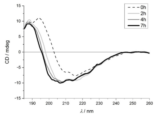 - Micsonai, A.; Wien, F.; Kernya, L.; Lee, Y.-H.; Goto, Y.; Réfrégiers, M.; Kardos, J. Accurate Secondary Structure Prediction and Fold Recognition for Circular Dichroism Spectroscopy. Proc. Natl. Acad. Sci. USA 2015, 112, E3095–E3103. [Google Scholar] [CrossRef]