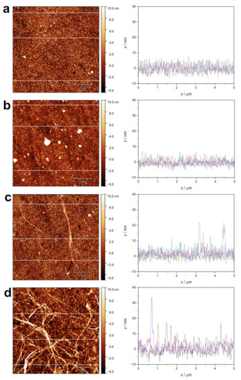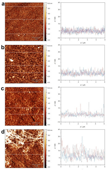 2.2.3. AFM Investigation of the Adsorbed Surfaces