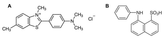 - Younan, N.D.; Viles, J.H. A Comparison of Three Fluorophores for the Detection of Amyloid Fibers and Prefibrillar Oligomeric Assemblies. ThT (Thioflavin T); ANS (1-Anilinonaphthalene-8-Sulfonic Acid); and BisANS (4,4′-Dianilino-1,1′-Binaphthyl-5,5′-Disulfonic Acid). Biochemistry 2015, 54, 4297–4306. [Google Scholar] [CrossRef]