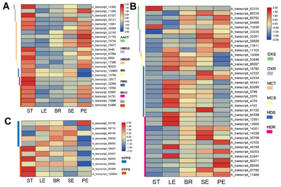3.3. Transcriptomic Insights into the Tissue-Specific Mva/Mep Pathways in O. vulgare ‘HS’