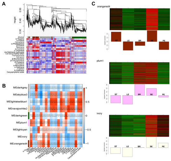 - Abbas, F.; Ke, Y.; Yu, R.; Yue, Y.; Amanullah, S.; Jahangir, M.M.; Fan, Y. Volatile terpenoids: Multiple functions, biosynthesis, modulation and manipulation by genetic engineering. Planta 2017, 246, 803–816. [Google Scholar] [CrossRef]