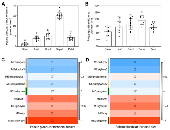 2.6. Modular Organization Analysis of Gene Expression Associated with Peltate Glandular Trichomes