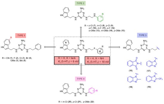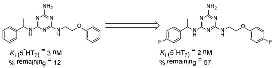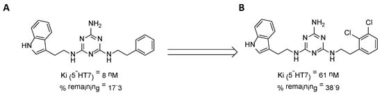 Kułaga D, Drabczyk AK, Satała G, Latacz G, Boguszewska-Czubara A, Plażuk D, Jaśkowska J. Design, Synthesis and Biological Evaluation of Novel 1,3,5-Triazines: Effect of Aromatic Ring Decoration on Affinity to 5-HT7 Receptor. International Journal of Molecular Sciences. 2022; 23(21):13308. https://doi.org/10.3390/ijms232113308