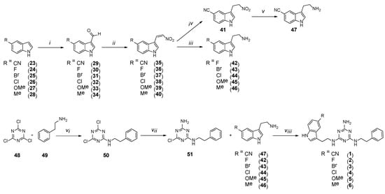 4.1.9. General Procedure for the Synthesis of Final Compounds 1–6 (Microwave-Assisted)