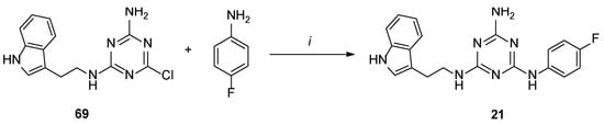 4.1.36. N2-(2-(1H-Indol-3-yl)ethyl)-N4-(4-Fluorophenyl)-1,3,5-Triazine-2,4,6-Triamine Hydrochloride (21)
