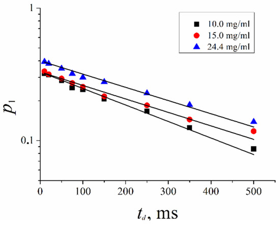 The lifetime of associates τ are (350 ± 10), (430 ± 20) and (440 ± 20) ms at solution concentration C = 10, 15 and 24.4 mg/mL, accordingly. The lifetime of associates increased insignificantly with solution concentration increasing.