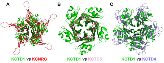 - Esposito, L.; Balasco, N.; Smaldone, G.; Berisio, R.; Ruggiero, A.; Vitagliano, L. AlphaFold-Predicted Structures of KCTD Proteins Unravel Previously Undetected Relationships among the Members of the Family. Biomolecules 2021, 11, 1862. [Google Scholar] [CrossRef] [PubMed]