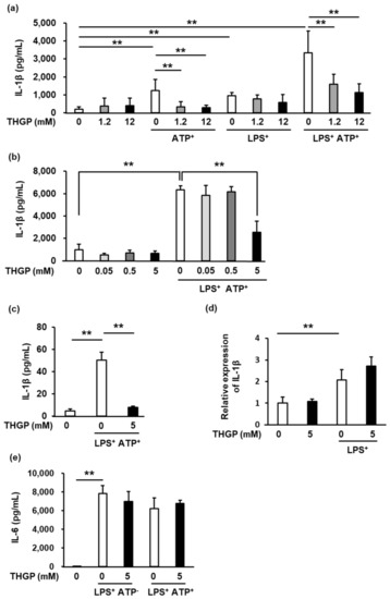 2.1. IL-1β Secretion from THP-1 Cells Was Suppressed by THGP