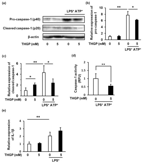 2.2. Caspase-1 Activity Was Suppressed by THGP