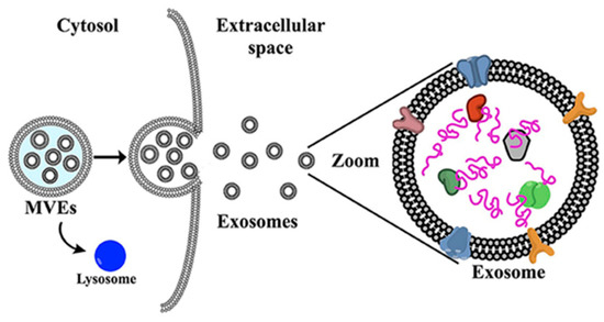 Exosome origin: Exosomes derive from the secretion of multivesicular endosome and can be purified and used for drug delivery purposes. Figure reprinted from de la Torre Gomez et al. [212].