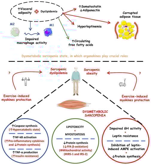 Physical exercise, in addition to improving lipid parameters by reducing cardiovascular risk, as well as mediating oxidative stress, might have a direct and significant impact on the prevention of sarcopenia since there is a release of myokines that promote muscle mass index preservation through a cross-link with the other organokines. However, physical inactivity leads to a lack of production of these myokines and causes the opposite effect, such as atrophy and other metabolic functions that will be explored throughout this study [].