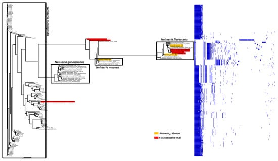 Pangenome tree of Neisseria isolated in Lebanon with 128 Neisseria spp. available in the NCBI GenBank database.