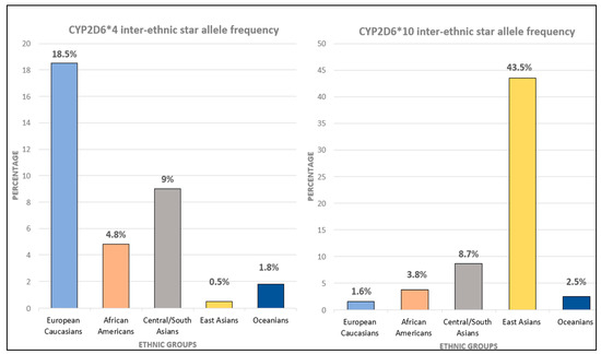 CYP2D6 inter-ethnic star allele frequency (https://www.pharmgkb.org/page/cyp2d6RefMaterials, PharmGKB) accessed on 8 February 2022, [114].