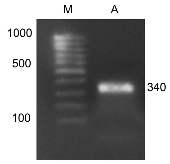The study of adenine methylation patterns was performed on the Csy1 gene promoter using methyl-specific restriction. For this, amplification of the modified DNA with primers to the promoter region of the citrate synthase gene was implemented, which made it possible to obtain products with the size of 340 nucleotides (Figure 6). For this, the following nucleotide sequences were used: forward, TAATGGGGGTTATGTGTATGTGTT; reverse, CAAATAAAAAATCCCATCAAATCAC. The resulting amplicons were used to assess the methyl status of the adenines in their GATC sites.