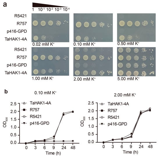 2.6. TaHAK1-4A Mediates K+ Uptake in Yeast