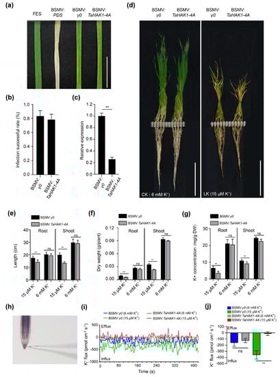 3.5. The K+ Transporter TaHAK1-4A Contributes to the K+ Uptake by Wheat Roots under LK Conditions