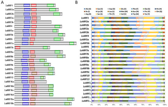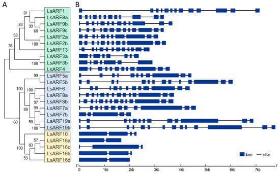 2.1. Identification of LsARFs from the Lettuce Genome
