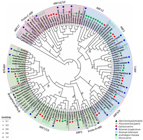 - Finet, C.; Berne-Dedieu, A.; Scutt, C.P.; Marletaz, F. Evolution of the ARF gene family in land plants: Old domains, new tricks. Mol. Biol. Evol. 2013, 30, 45–56. [Google Scholar] [CrossRef] [PubMed]