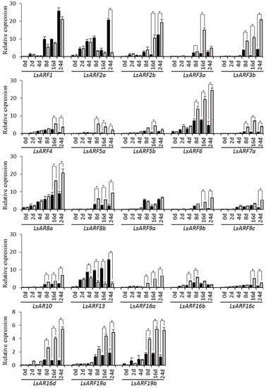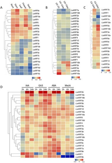 4.5. Expression Profiling of LsARF Genes in Different Tissues or under Various Stresses