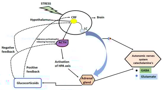 In depression, acute traumatic or chronic stress is considered the most common factor [18], however, long-lasting stress can cause changes in DNA and histones which results in abnormal behavior in adulthood [19,20,21]. Stress responses can be activated by the hypothalamic-pituitary-adrenal (HPA) axis due to increase in the circulating levels of glucocorticoids. High levels of glucocorticoid affect multiple organs and lead to negative feedback mechanism [22,23,24].