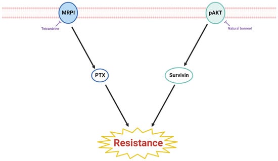 | Alkaloid | Tetrandrine | Radix Stephania tetrandra S. Moore | YES2/DDP | 0.1, 0.3, 1, 3, 10, 30 µM; 72 h | Reduction in drug resistance | ↓ MRP1 | [74] |