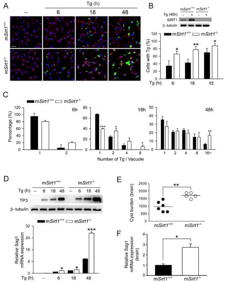 2.1. Myeloid SIRT1 Is Required for Antiparasitic Activity in Response to Toxoplasma Infection