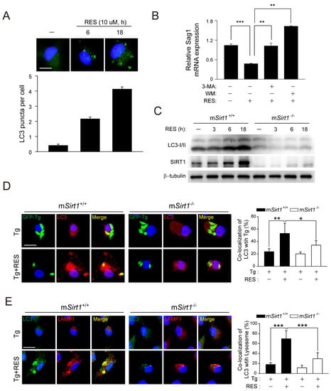 2.3. Pharmacological Activation of SIRT1 by RES Is Essential for the Induction of Antiprotozoal Autophagy and the Colocalisation of PV with Autophagosomes/Lysosomes
