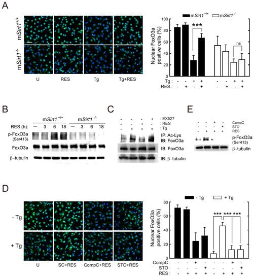 2.6. SIRT1 Positively Regulates the Activity of FoxO3a Via AMPK Signalling Pathways