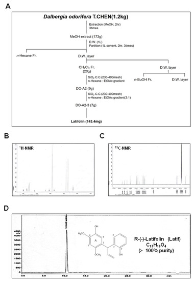2.1. Identification and Isolation of Latif from Heartwood of D. odorifera