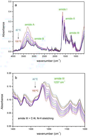 - Stani, C.; Vaccari, L.; Mitri, E.; Birarda, G. FTIR investigation of the secondary structure of type I collagen: New insight into the amide III band. Spectrochim. Acta Part A Mol. Biomol. Spectrosc. 2020, 229, 118006. [Google Scholar] [CrossRef]