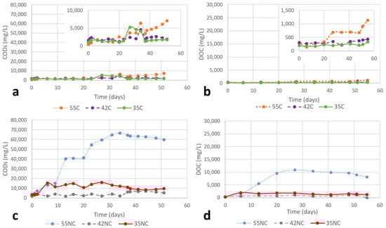 | Reactor | T (°C) | Substrate | TS (%) | VS (%) ** | CODs (mgO2/L) * | CODs (%) | DOC (mg/L) * | DOC (%) |